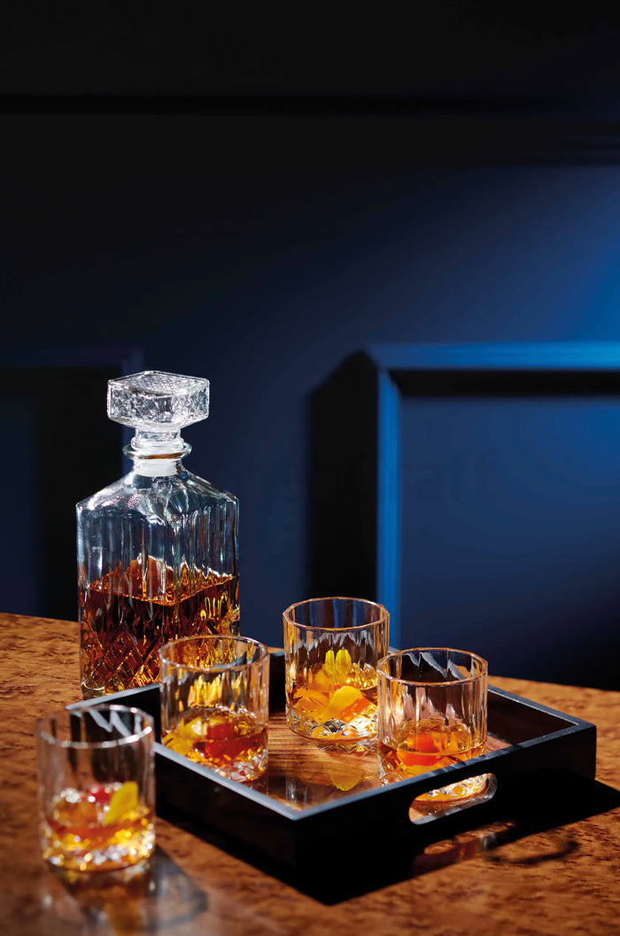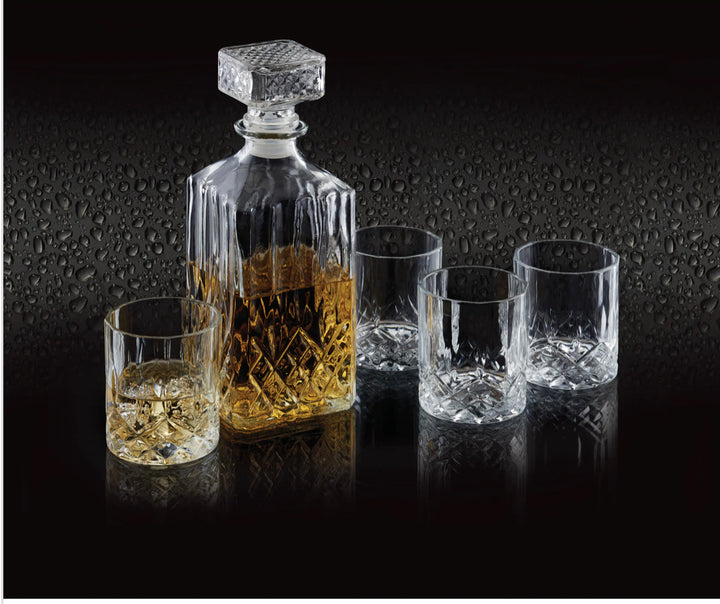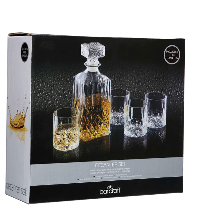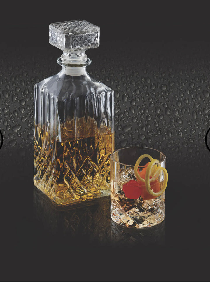 - It includes a 900 ml (1½-pint) glass whisky decanter - big enough for a standard bottle of Scotch - and 4 Old Fashioned glasses.
