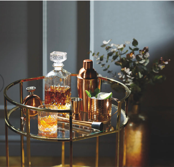 - Scotch or Bourbon. Stored or poured. Your whisky will always looks debonair with this set's traditional cut-glass detailing.
