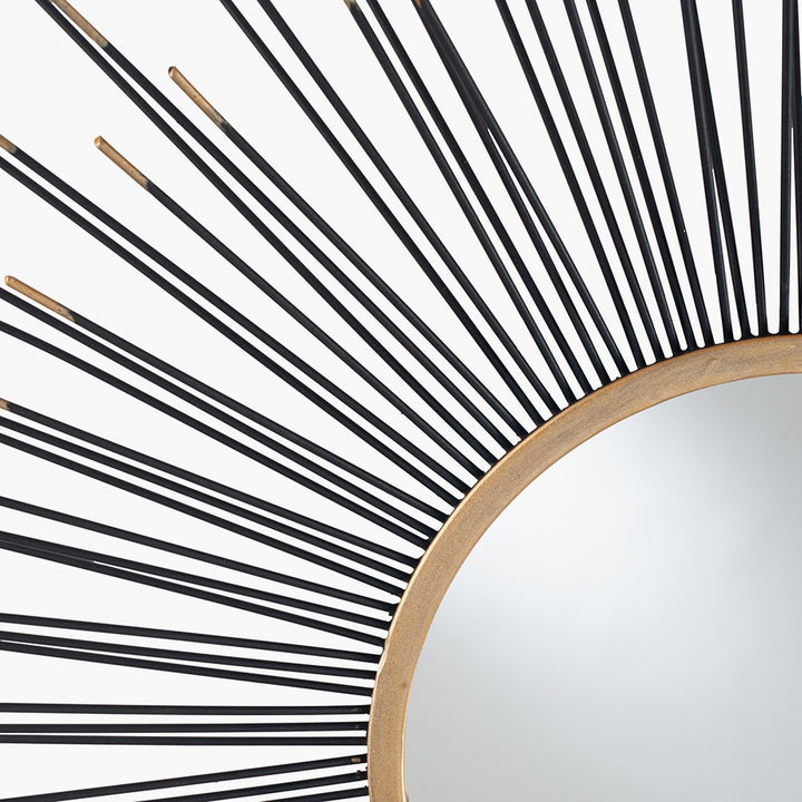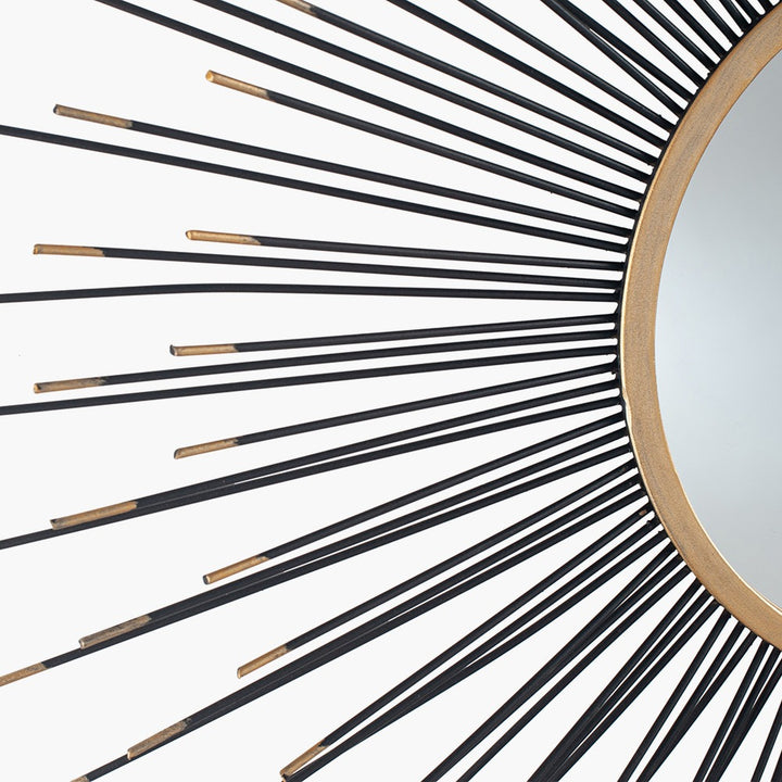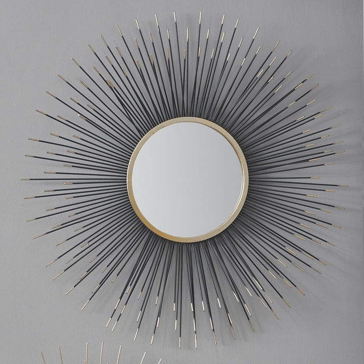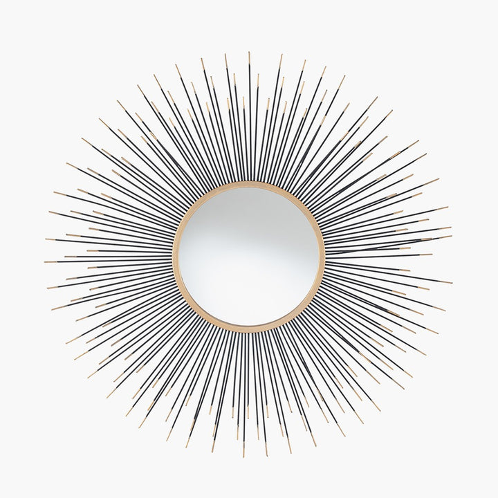 Black and Gold Metal Starburst Design Round Wall Mirror