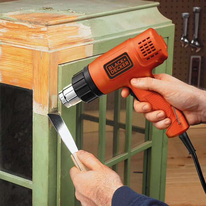 This heat gun is an ideal tool for stripping paint, varnishes and softening and removing adhesives or drying new coats of filler. Other applications include thawing frozen water pipes and loosening rusted or seized nuts. With its temp range at 460 and 600 degrees celcius, it allows you to tackle a number of coatings quickly and easily. The product features 2 heat and airflow settings for more control depending on application. A built in stand comes handy when the tool is cooling down after finished job.