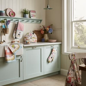 Bring playful retro vibes into your kitchen with the Ulster Weavers Cool Cats Double Oven Glove. Inspired by 60s fashion, this fun and kitschy design features mischievous cats in vibrant pinks and yellows, capturing the lively, whimsical spirit of the era while keeping your hands safe.