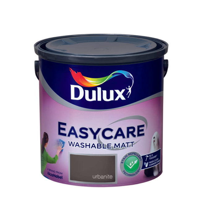 Dulux Easycare Washable Matt 2.5L is a scrubbable matt paint with stain repellent technology. This means its 50 x tougher than standard vinyl matt and repels everyday water based stains like tea and coffee.