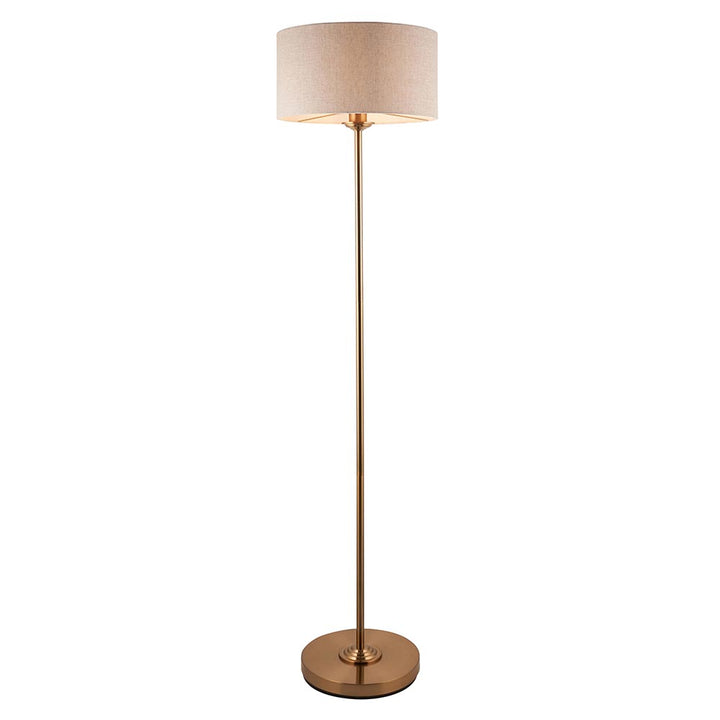This floor lamp is a sophisticated mix of natural linen fabric with colour matching cotton inner and vintage brass plated metalwork. This statement floor lamp is the perfect timeless addition to modern and classic homes of today.