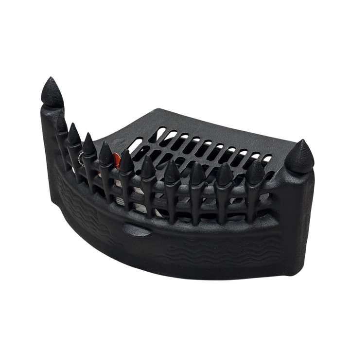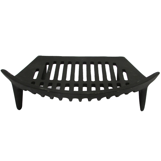 Strong Cast Iron Fire Grate – free-standing on 4 sturdy legs, with a raised round front that keeps coal and logs safely in place during burning.
