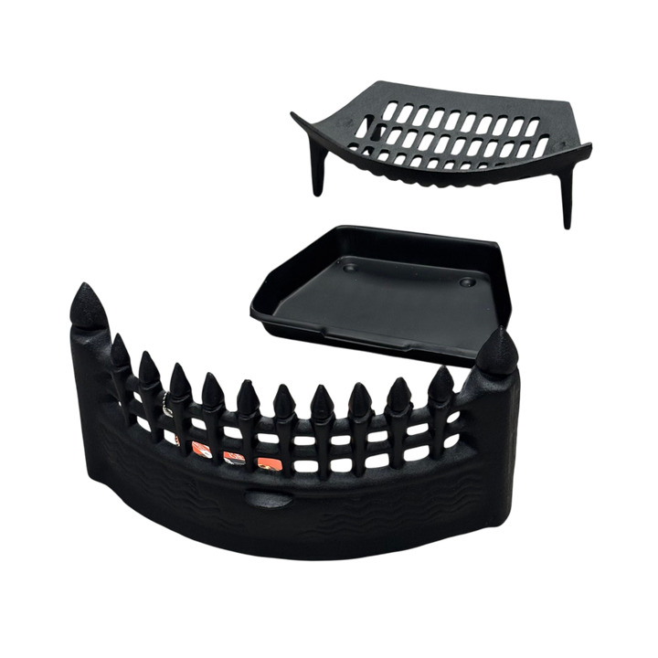 Enjoy the warmth and charm of a traditional open fire with our 16" Cast Iron Fire Grate Bundle Set – a complete solution that includes a sturdy fire grate, matching fire front fret, and durable ash pan. Designed for everyday use, this set combines classic craftsmanship with long-lasting quality to keep your fireplace neat, efficient, and ready to use.