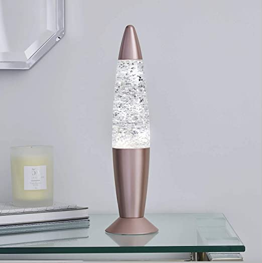 Introduce a stunning lamp to your home with this contemporary Stars Glitter Lamp, filled with clear liquid and glitter stars which moves once the lamp is switched on, bringing a fun and creative element to any living space. This light creates a dazzling shimmer and features a sleek metallic pink design that suits a variety of home decors.