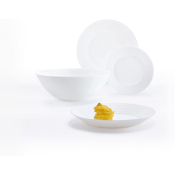 - Timeless Minimalist Design: The Harena range showcases a clean, white design with a distinctive ribbed rim, adding subtle texture and sophistication to your table setting.