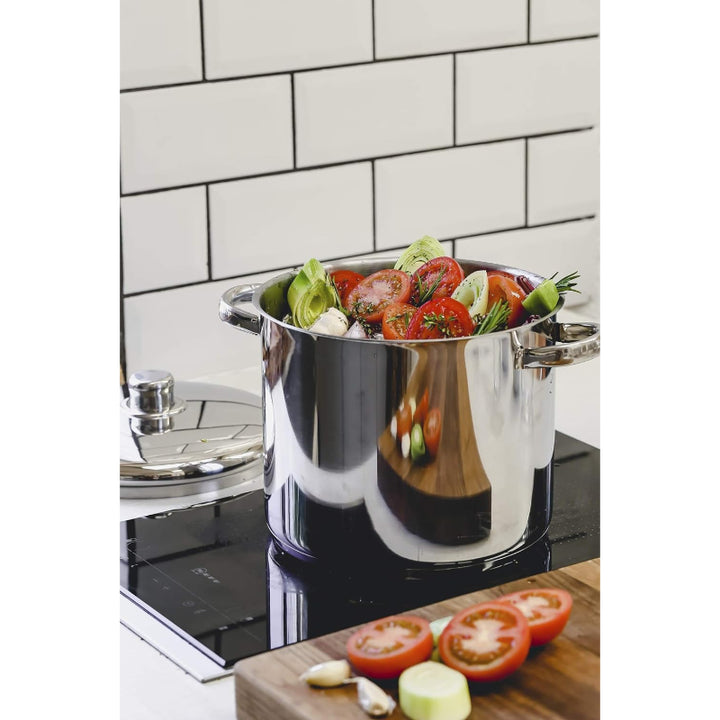 Included with the 24cm stockpot is a vented glass lid, ideal for checking cooking without losing heat whilst on the hob, the vent prevents the contents from boiling over.