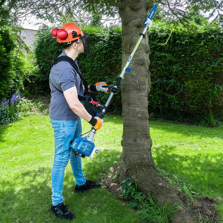 Take on all your garden maintenance with one powerful tool. The Hyundai 52cc Petrol Multi Tool combines four essential attachments—hedge trimmer, pole saw, brushcutter, and grass trimmer—into one reliable, high-performance unit. Designed to make your work easier, it comes with an extension shaft and shoulder harness for comfort and reach.