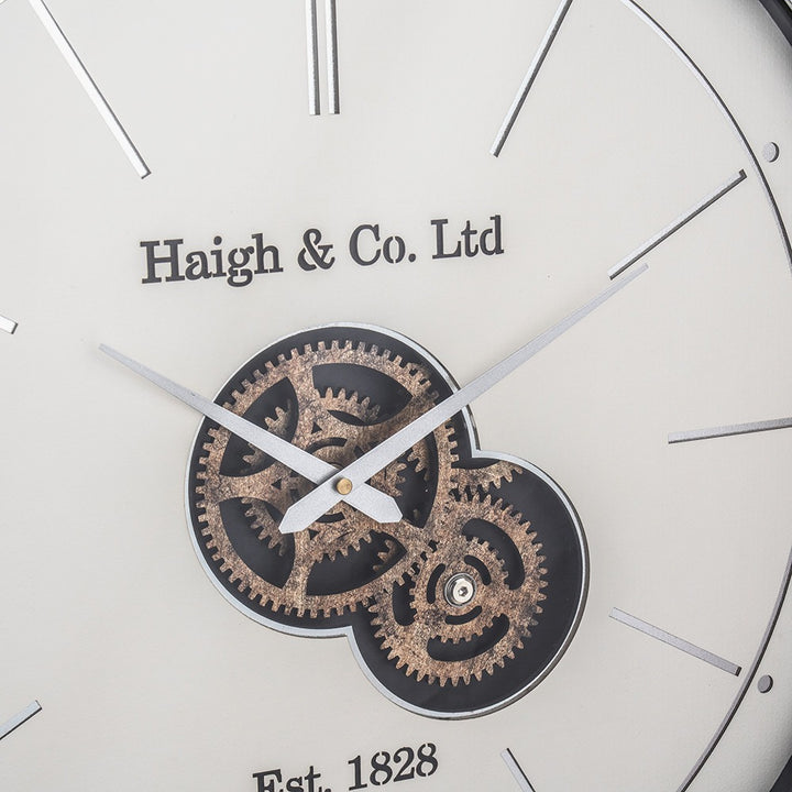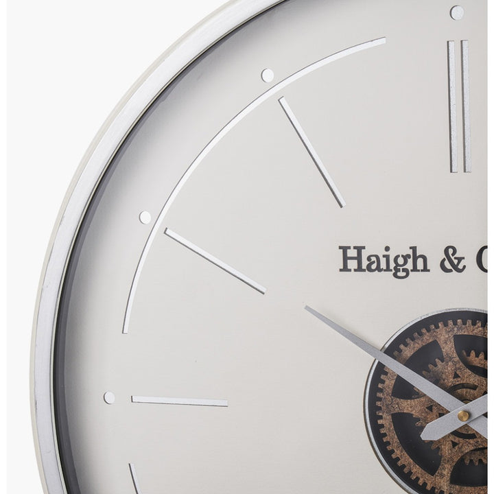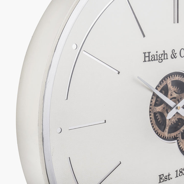 Ivory and Silver Wood Working Cog Wall Clock