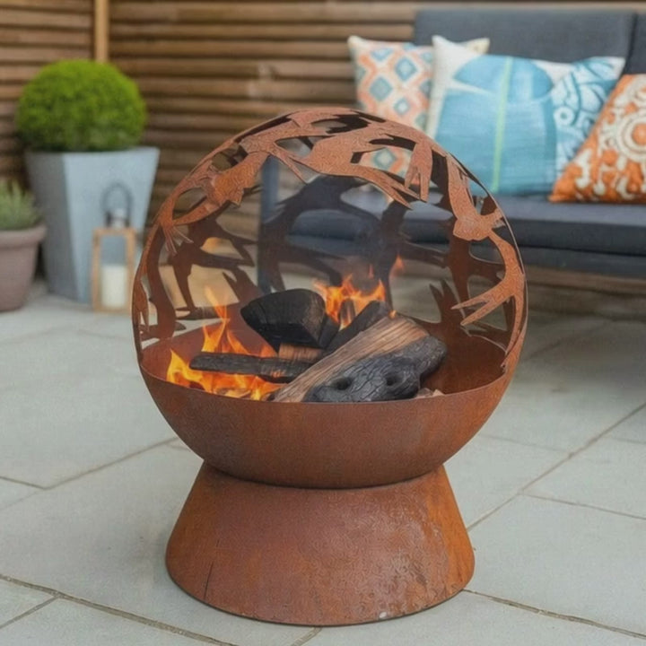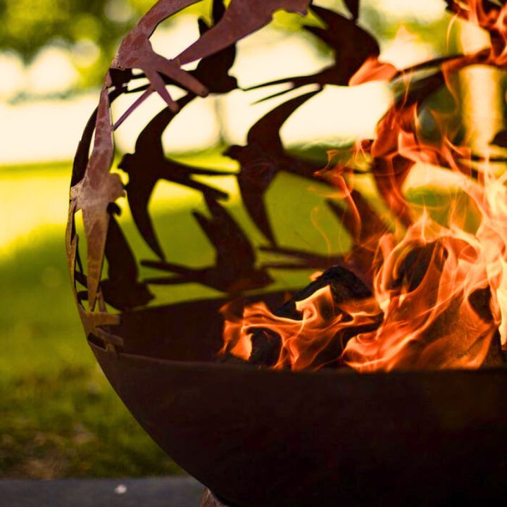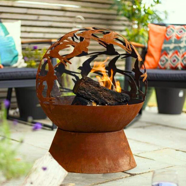 Bring warmth and visual charm to your garden with the La Hacienda Swallows Globe Firepit. Crafted from rusted steel, this unique firepit doubles as a striking garden sculpture, featuring beautifully cut-out swallow motifs that glow when lit from within.