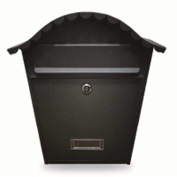 This black post box is a simple traditionally designed letter box that can be mounted onto a wall outside of your home. It is made from strong galvanised steel and has an outward opening letter flap that is large enough to take an A4 envelope. This mailbox is weather resistant and comes with instructions and fittings. The curved roof detail will compliment any external home décor.