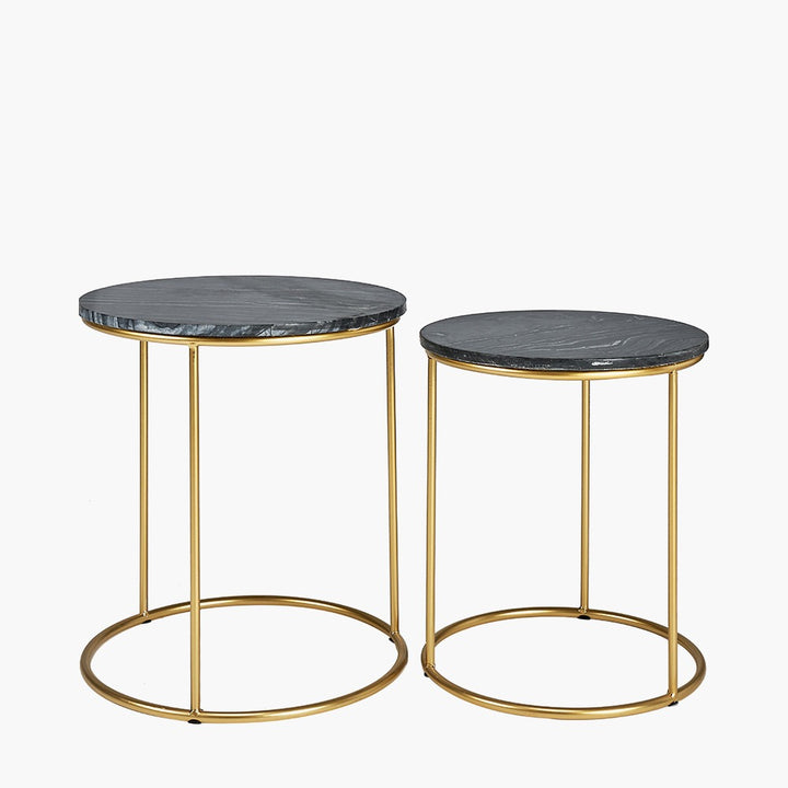 Milly S/2 Black Marble and Gold Metal Side Tables