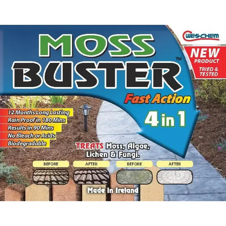 Muss Buster is your go-to solution for clearing moss, lichen, red algae, and fungi from a wide range of outdoor surfaces. Whether it's your patio, greenhouse, boat, or even headstones, this biodegradable formula gets the job done quickly and efficiently without the need for harsh scrubbing.