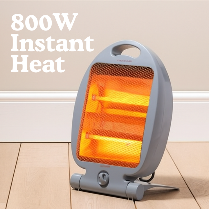 The 800W halogen electric heater uses less energy and provides a safer rapid heating temperature to keep you warm in the winter. Small heaters that are ideal for your office, bedroom, living room, and reading room. This Heater gives you immediate heat after you put it on, it is portable and lightweight.