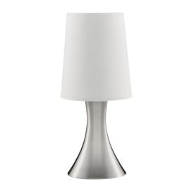 This Satin Silver Touch Lamp complete with white drum shade is perfect for lighting your bedroom, living room or dining room. The lamp is short and stylish with a sleek, modern satin silver finish circular base and white fabric drum shade. It’s also touch sensitive, with low, medium and high light settings, to create the perfect ambience in any corner of your home.