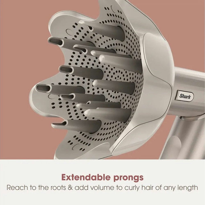 Curl-Defining Diffuser – Fast drying for curls and coils. Extendable prongs lift and define roots.