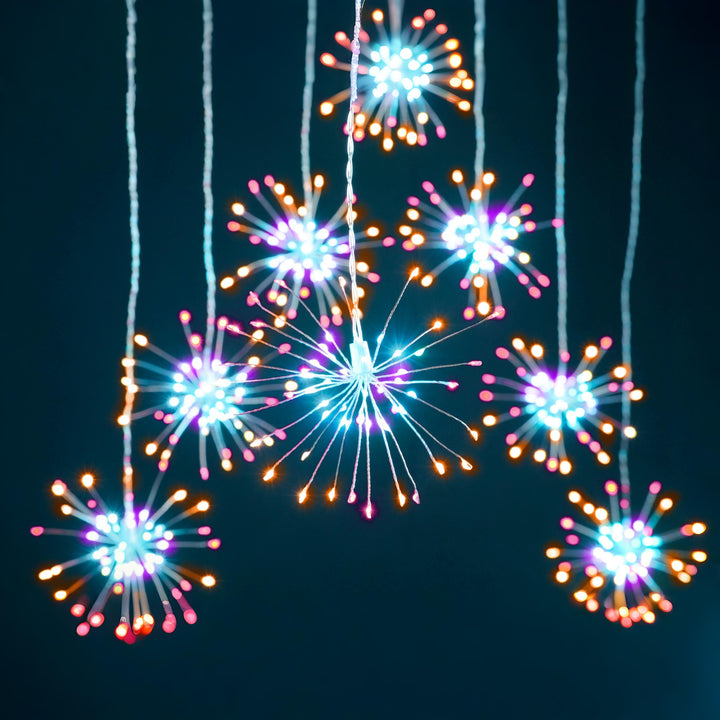 Aurora-effect starburst lights – magical, twinkling curtain display.