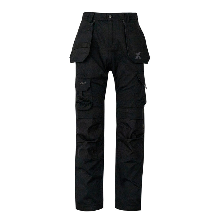 The Xpert™ PRO Stretch+ Work Trouser in Black is a modern tapered fit trouser made with tough 250 GSM Polyester/Cotton Stretch material, with a 360° stretch gusset and rear. These work trousers feature a rubberized flex waistband that grips your top garment to keep your trousers in place without a belt. Triple-stitched seams, YKK zippers, and bar tacks provide durability and long-lasting wear. High-quality Cordura® in all main areas ensures these trousers can stand up to any job.