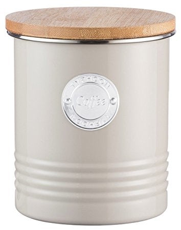 A decorative kitchen canister that will add some contemporary style into the home. Made from top quality coated steel with pressed emblem.