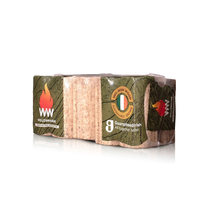 Experience the warmth of nature while treading lightly on the environment with our Willow Warm Wood Briquette 10 Pack. These briquettes are more than just a source of heat; they represent a commitment to sustainability, quality, and eco-conscious living. These briquettes are crafted from a blend of 100% renewable and indigenous Irish-grown willow and biomass. This blend not only ensures a reliable and consistent source of heat but also minimizes the impact on our precious natural resources.