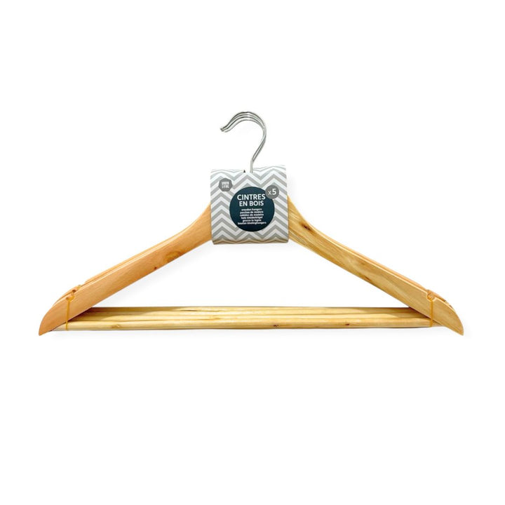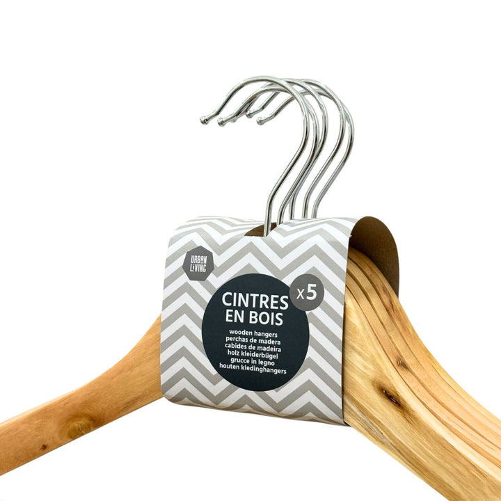 Keep your wardrobe organised and your clothes in perfect shape with this Set of 5 Wooden Hangers. Made from sturdy wood with a smooth finish, these hangers are ideal for everything from shirts and dresses to coats and suits.