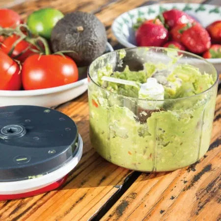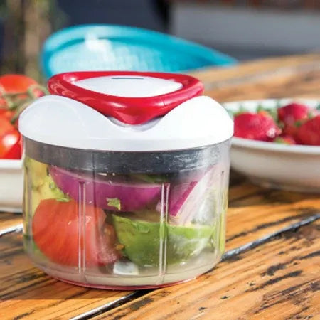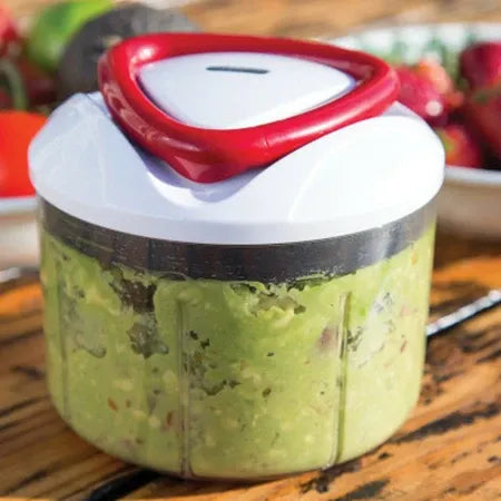 The Zyliss Easy Pull Food Processor makes food prep simple, fast, and cordless. This manual food processor uses a patented Swiss-designed pull system to chop, mix, blend, and puree ingredients evenly — no electricity needed. Pull the handle 3–5 times for a coarse chop or 8–10 times for a fine consistency. Perfect for everything from salsa, smoothies, and soups to breadcrumbs and burger mince, it’s a must-have for every kitchen.